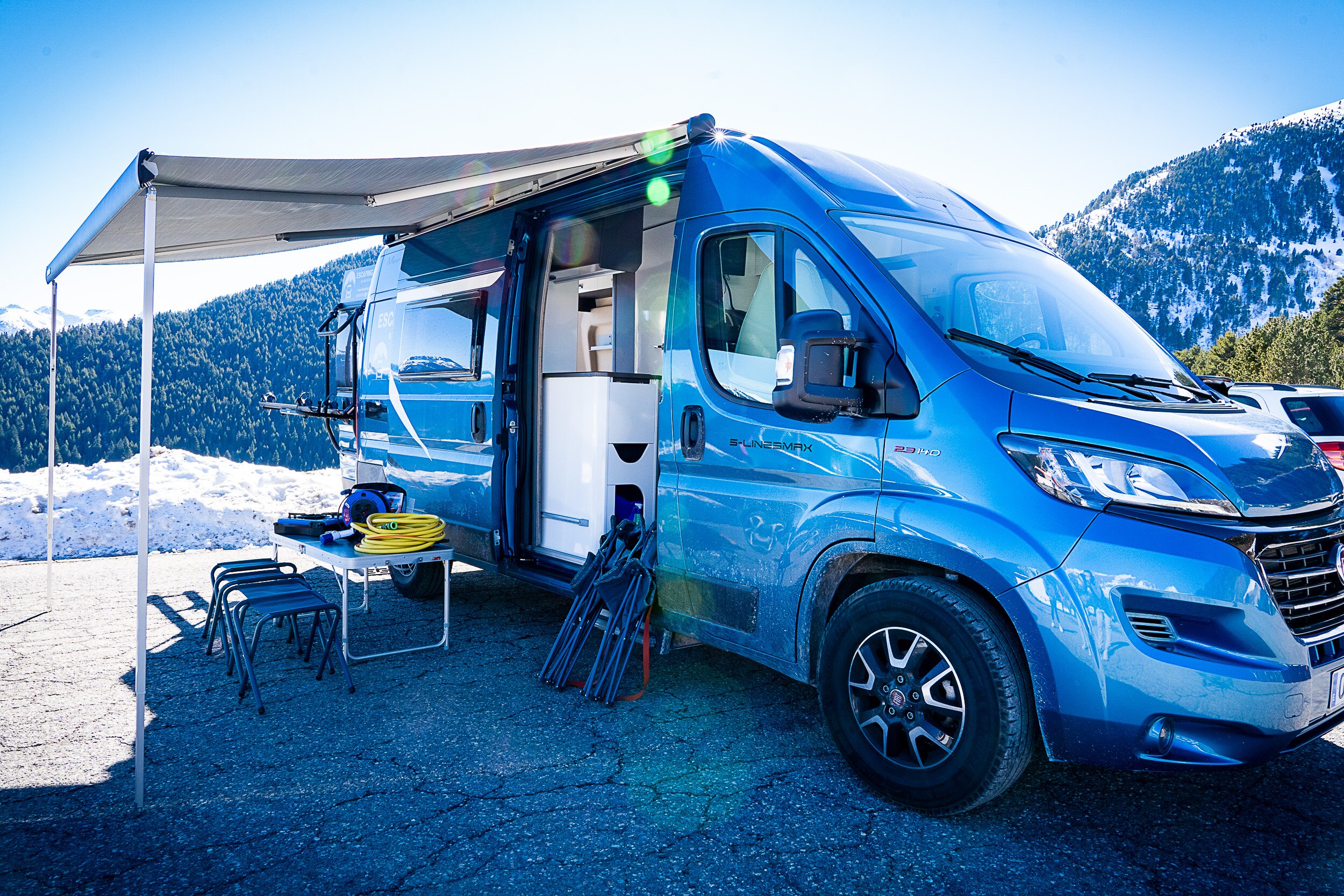 Ready for all kinds of adventures: The Snow kit always ready and all-season tires for traveling on icy and snowy roads. If you need the kit, there is no extra cost because it is also included in the camper van rental. At Escaping Van, they have thought of everything.