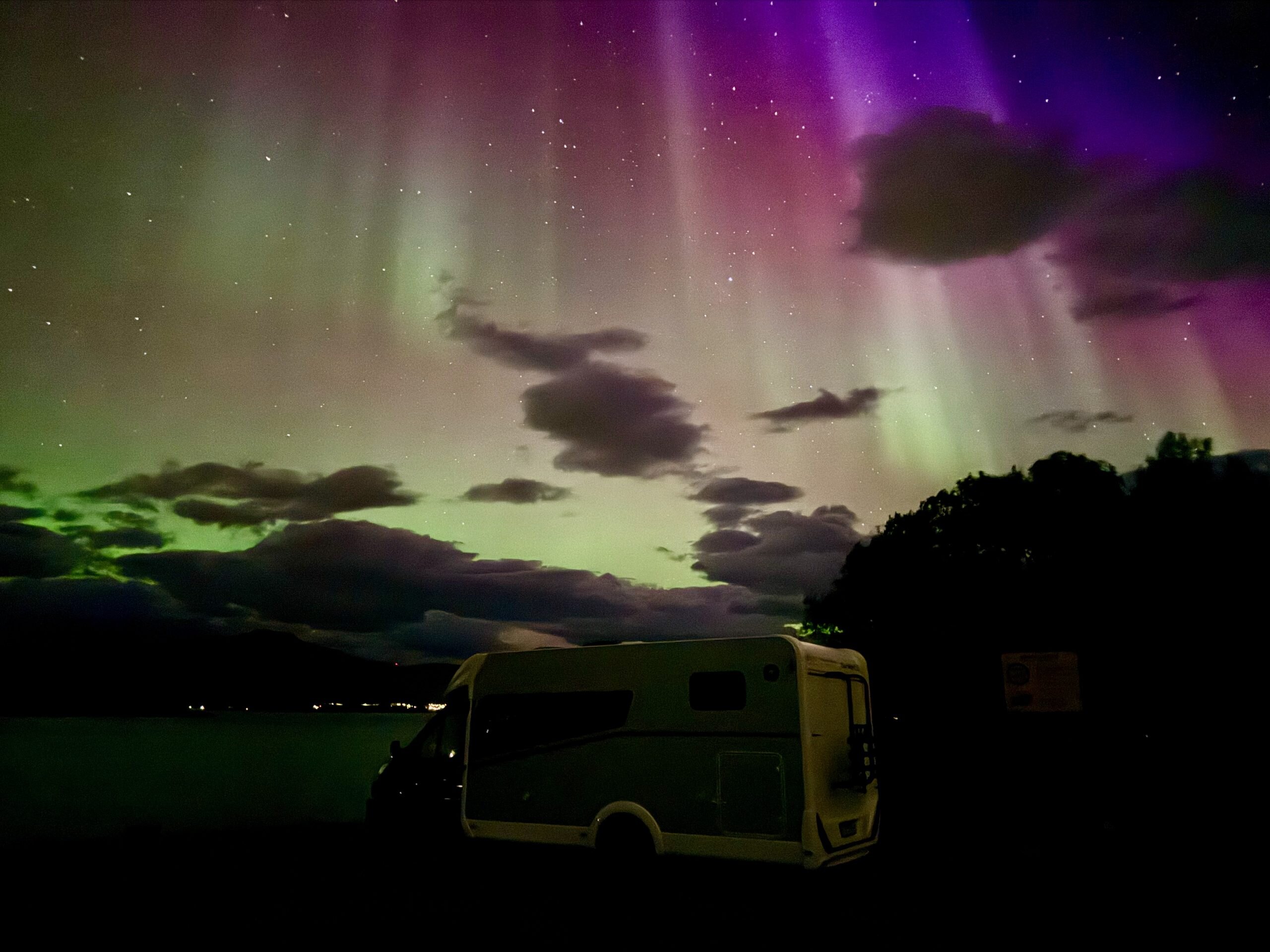We haven't talked yet about one of the highlights of Norway, specially in the Arctic Circle, which are the Northern Lights. To be able to see them you need basically 3 things: darkness, enough solar activity and a clear sky. We were checking the forecast every day but the solar activity was pretty low all the time. But that night the stars aligned! There was a small window after dinner that was dark enough, with solar activity and no clouds (which would come later). So when it was time, we got out of the motorhome and after getting used to the darkness we saw them for the first time in our lives. It was a magic moment and the perfect ending for our trip in the Lofoten islands.