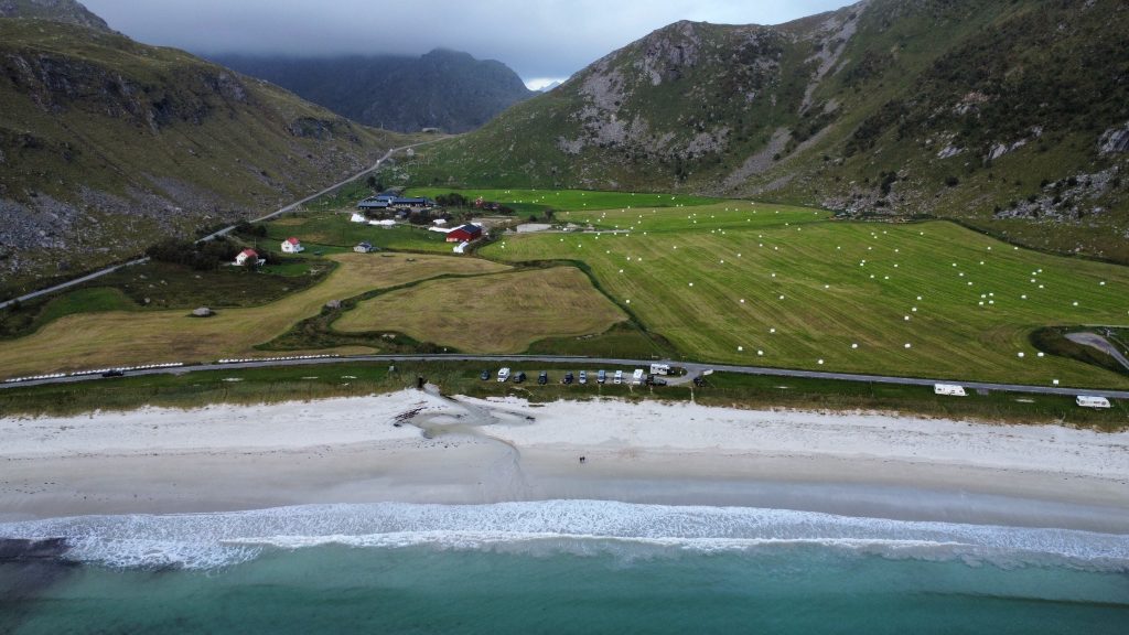 In the afternoon, we hit the road again towards the beach. Haukland Beach is one of the most famous beaches in Lofoten. Next to it, in Vik Beach, we found a private spot that had a prime location.